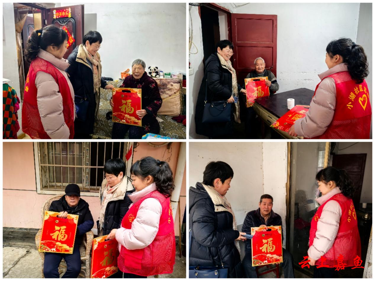 中国人寿嘉鱼支公司志愿者带着准备好的春联和“福”字礼包走进辖区高龄老人、独居老人及行动不便居民家中,向他们送上礼包与问候。75岁的李奶奶接过春联,脸上洋溢着幸福的笑容。