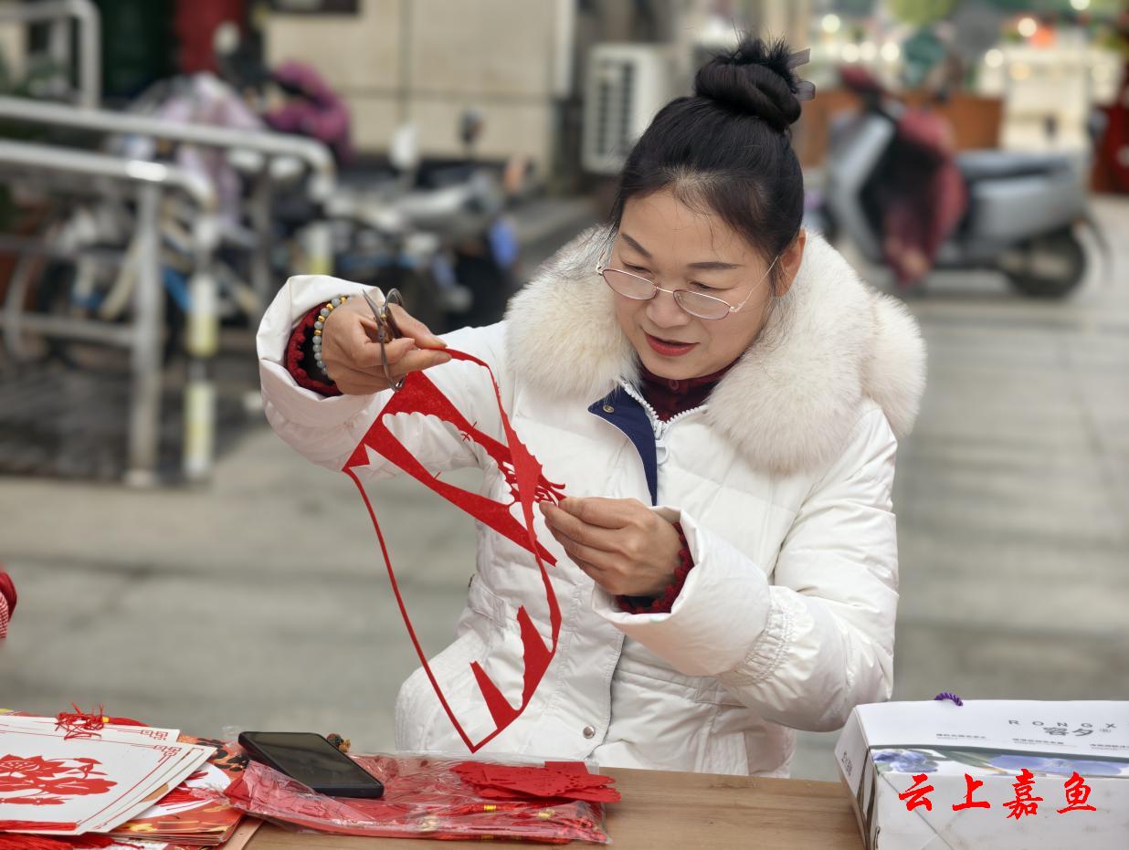 非遗体验区成为孩子们的“年俗课堂”,也让成年人重温儿时记忆。社区妇联邀请非遗传承人现场传授剪纸技艺,红纸在指尖翻折、剪刻之间,化作灵动的窗花与生肖图案。孩子们眼神专注,小手虽显稚拙却一丝不苟;大人们围坐交流,在动手实践中重拾旧时年俗,也让非遗在代际间悄然延续。