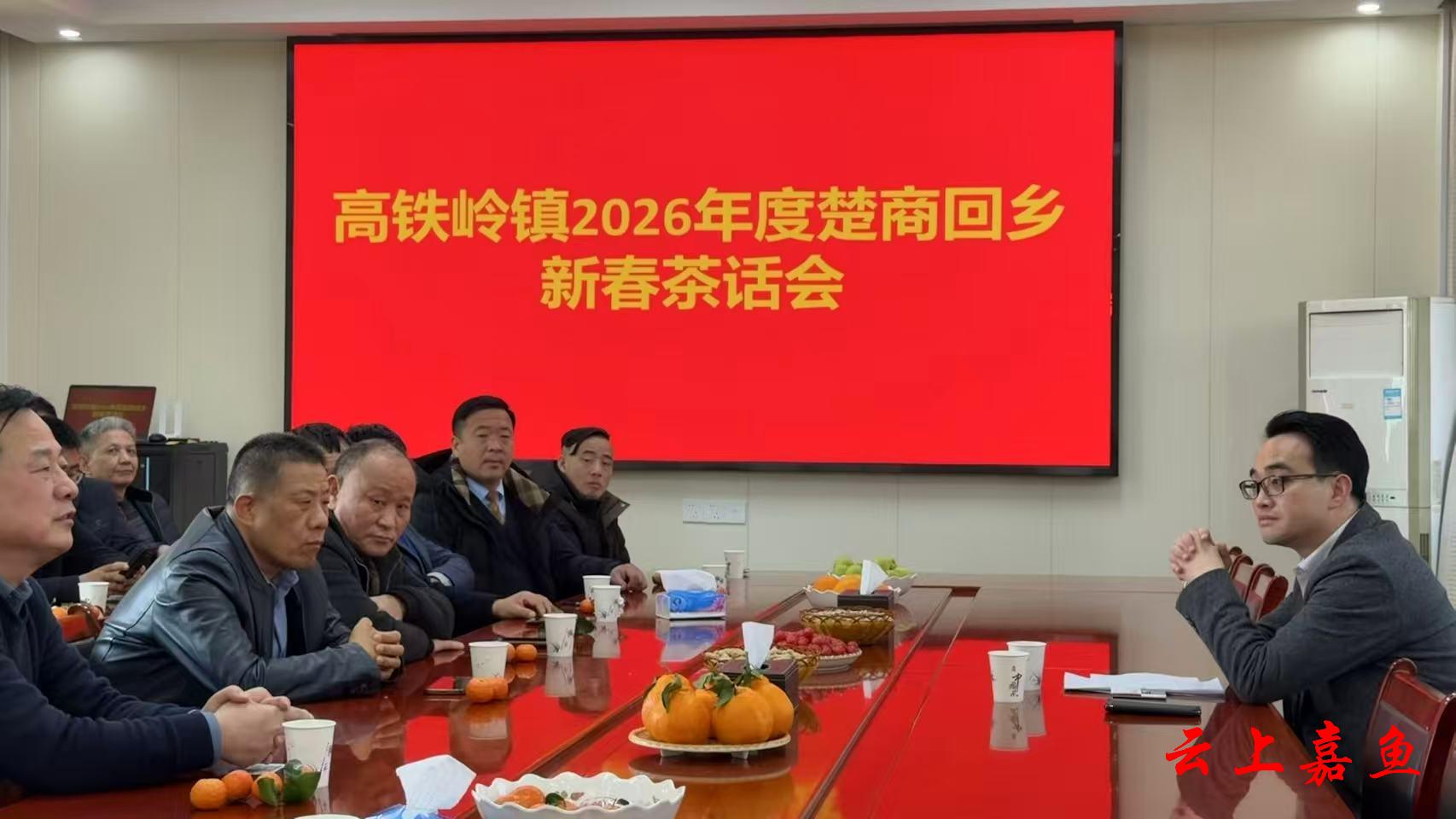 云上嘉鱼报道(通讯员陈晓宇)2月14日,高铁岭镇举行2026年度楚商回乡新春茶话会,邀请春节返乡的企业家代表欢聚一堂,畅叙桑梓情谊,共谋发展大计,同贺新春佳节。