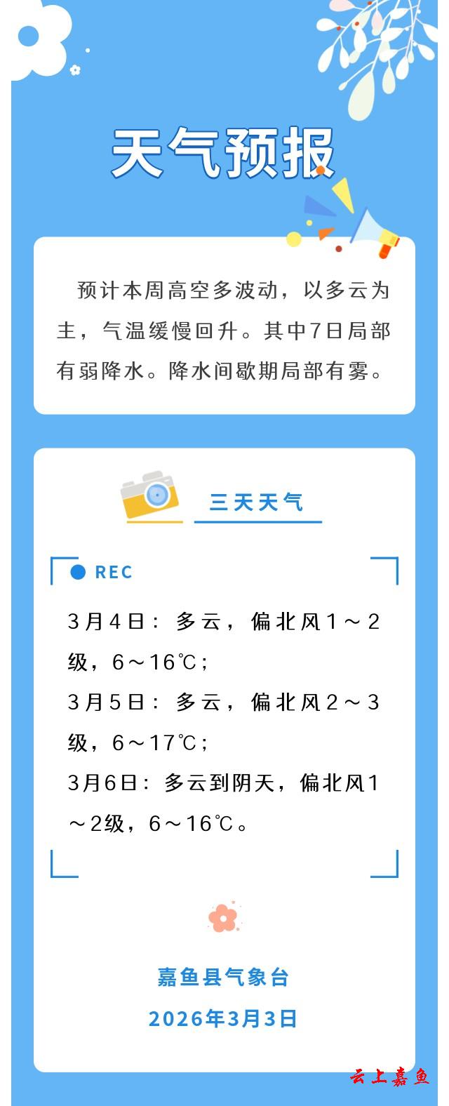 2026年3月3日嘉鱼天气预报