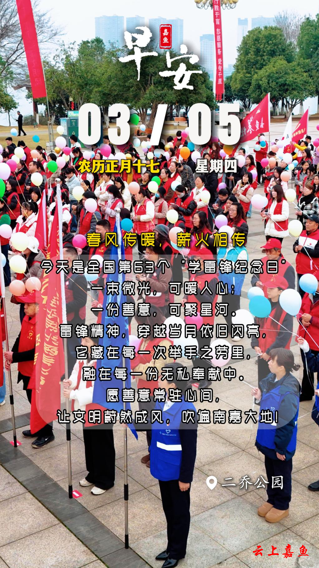 云上嘉鱼报道(全媒体记者邓丹)春风送暖,志愿同行。3月5日,在全国第63个“学雷锋纪念日”到来之际,2026年嘉鱼县学雷锋月活动启动仪式在二乔公园隆重举行。县委常委、政法委书记范威出席仪式并宣布活动启动。