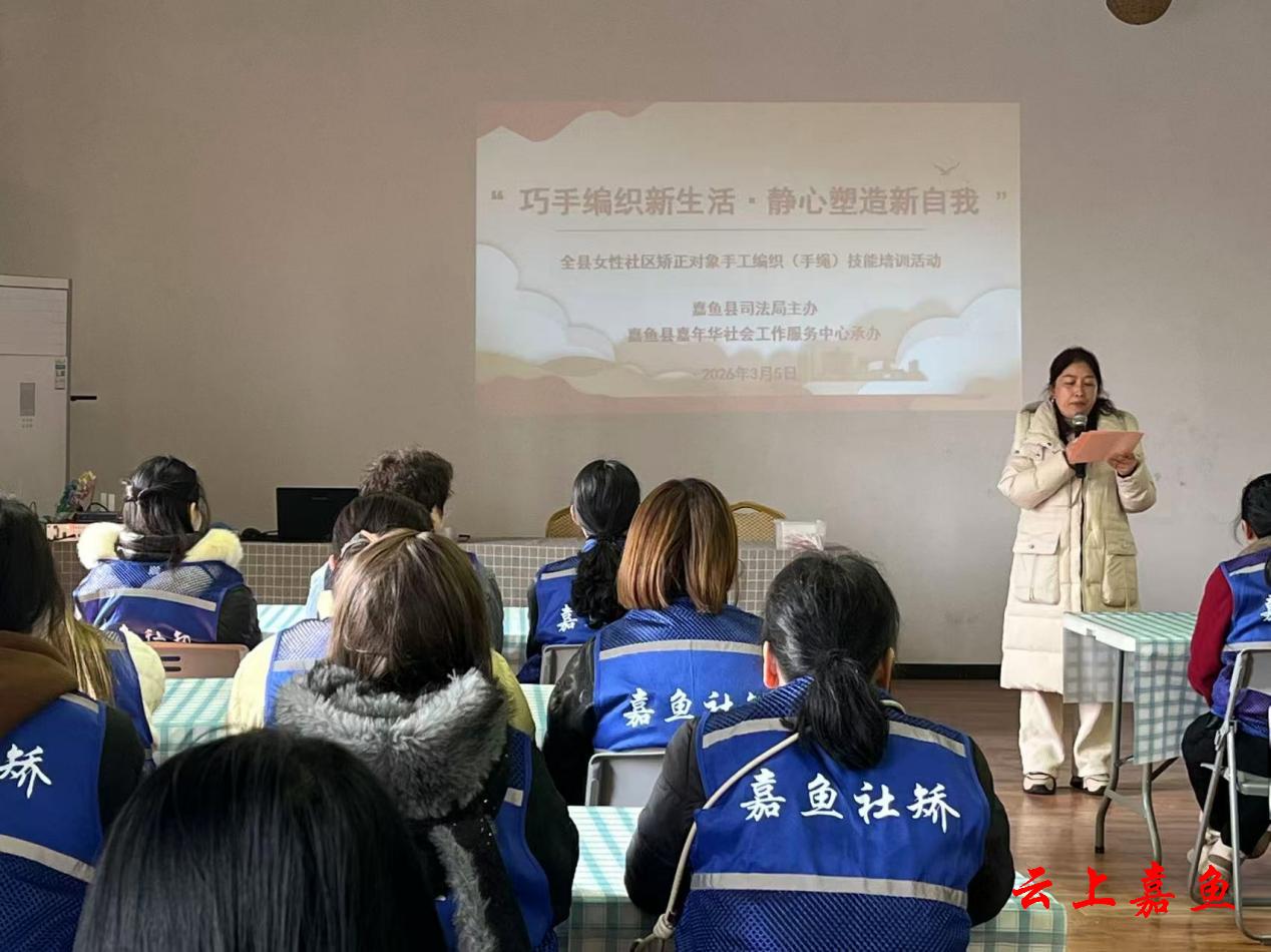 云上嘉鱼报道(通讯员潘裕)为落实社区矫正“教育、感化、挽救”方针,丰富女性社区矫正对象监管教育形式,提升其心理健康与社会适应能力,3月5日,嘉鱼县司法局以“巧手编织新生活·静心塑造新自我”为主题,在嘉年华社会服务中心开展女性社区矫正对象手工编织(手绳)技能培训活动。