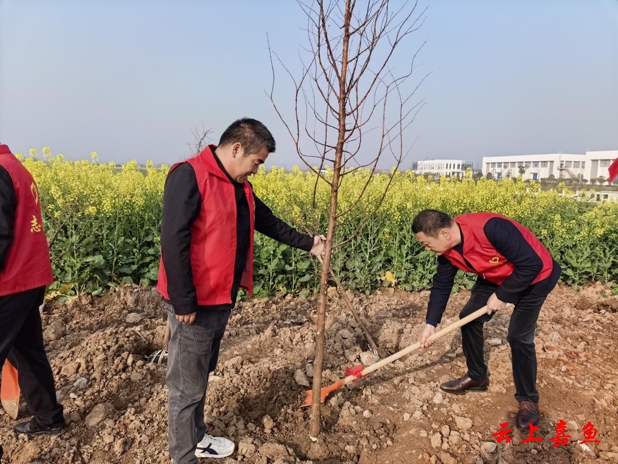 云上嘉鱼报道(全媒体记者祁声坤 通讯员刘书帆)春风催新绿,植树正当时。3月12日,渡普镇组织全镇党员干部、镇属各部门及各村、社区党员干部共40余人,来到产业园区路牧之星段开展义务植树活动,以实际行动践行绿色发展理念,增添生态底色。