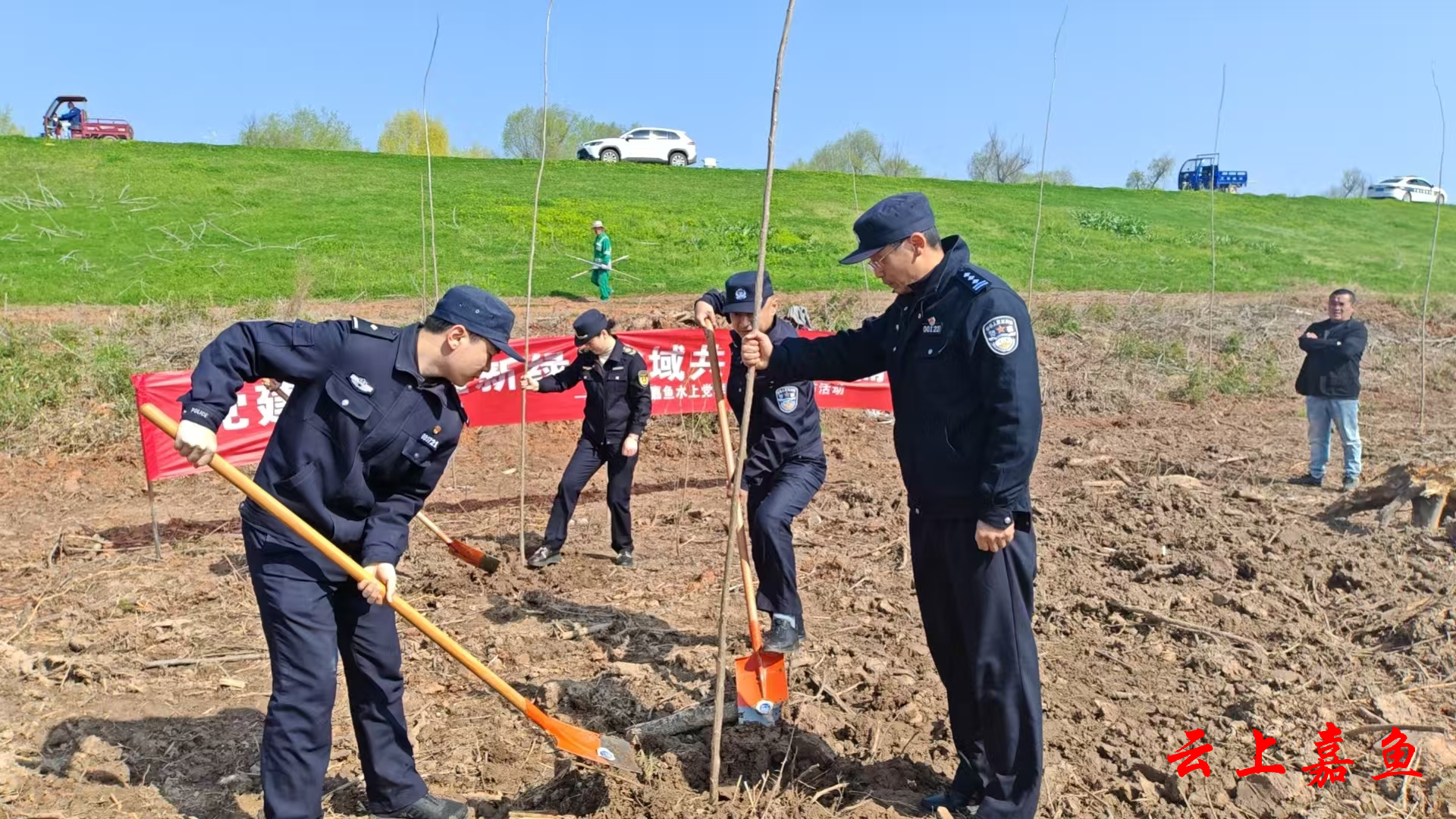 云上嘉鱼报道(全媒体记者夏洋)春风拂江岸,植树正当时。3月11日,在第48个植树节来临之际,长航公安嘉鱼派出所联合武汉海事局咸宁海事处、嘉鱼县人民检察院、嘉鱼县交通运输综合执法大队等嘉鱼县长江水上党群服务中心成员单位,在长江嘉鱼段滨江生态带开展“党建引领植新绿,水域共治谱新篇”志愿服务活动,以实际行动践行习近平生态文明思想,守护长江生态屏障。