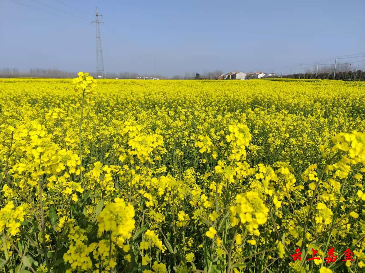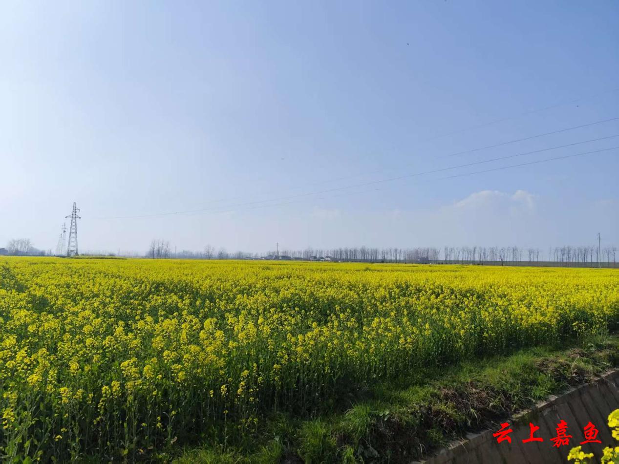 云上嘉鱼报道(全媒体记者郭辉)3月14日,记者在陆溪镇官洲村看到,公路两旁的数千亩油菜花竞相绽放,一朵朵、一簇簇,油菜花将农田装扮成金色的花海。