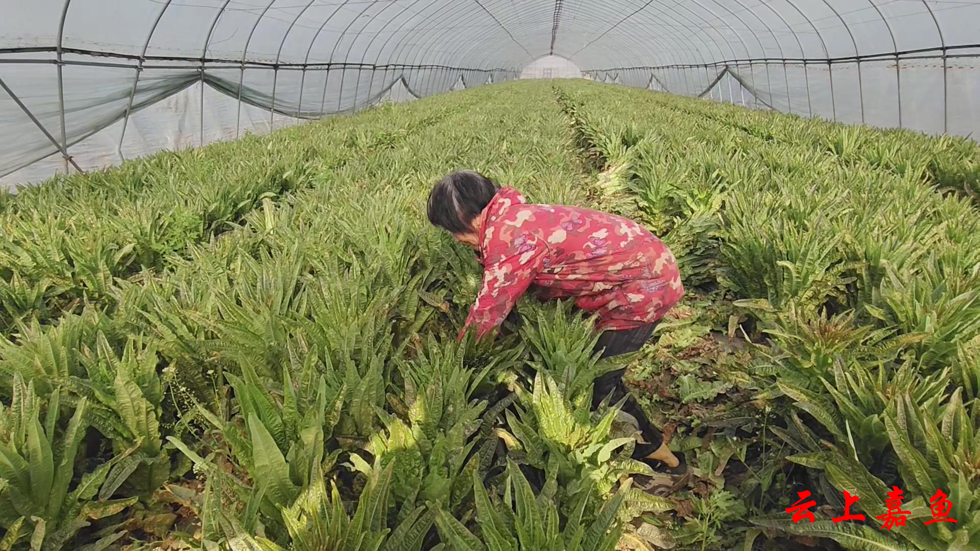 云上嘉鱼报道(全媒体记者邓伟强)近日,记者走进新街镇晒甲山村蔬菜种植基地,只见大棚内成片的莴苣青翠欲滴、长势喜人,种植户刘师傅正带着两名工人抢抓农时,加紧采收。