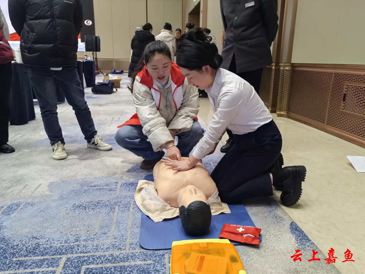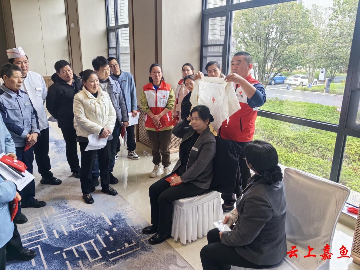 云上嘉鱼报道(全媒体记者汪妍 通讯员熊威)为持续提升我县服务行业应急处置能力,筑牢宾客生命安全防线,3月18日,嘉鱼县红十字会为辅仁大酒店员工开展应急救护知识普及培训,推动急救技能入岗入心,切实保障酒店应急救护能力全面达标。