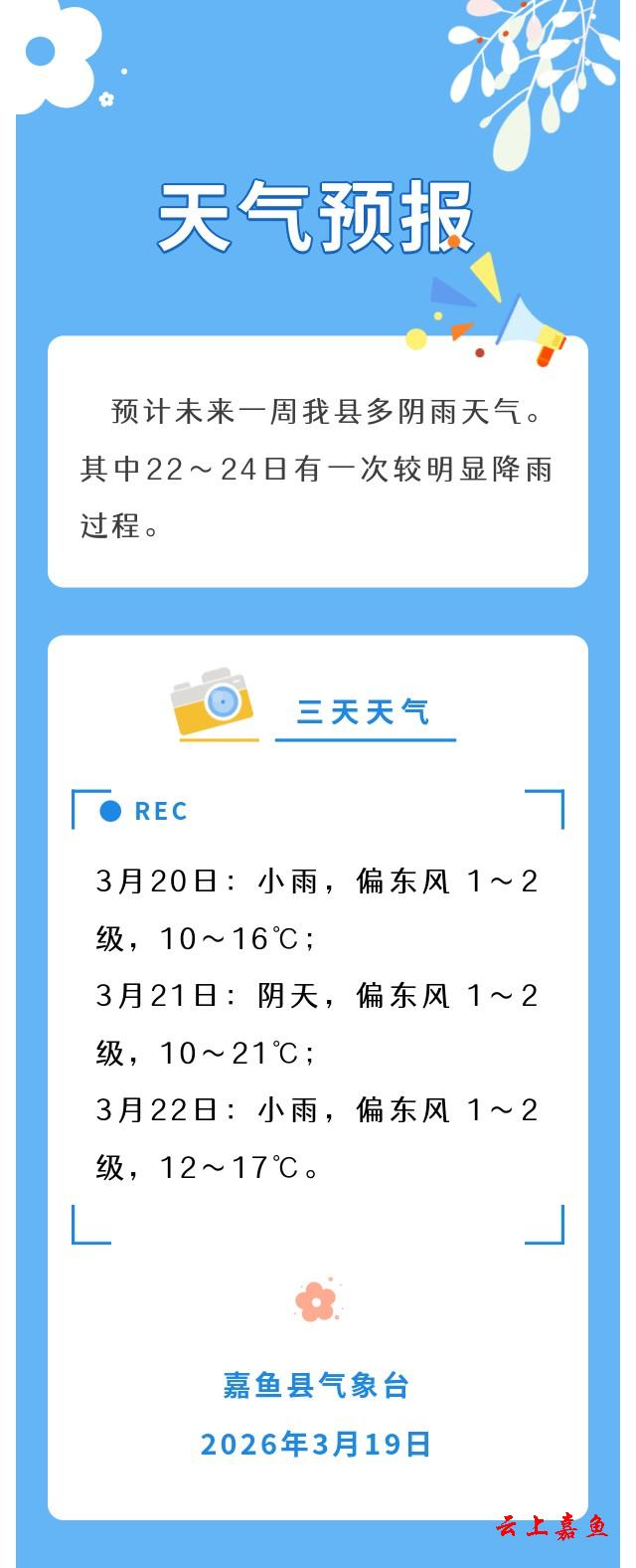 2026年3月19日嘉鱼天气预报