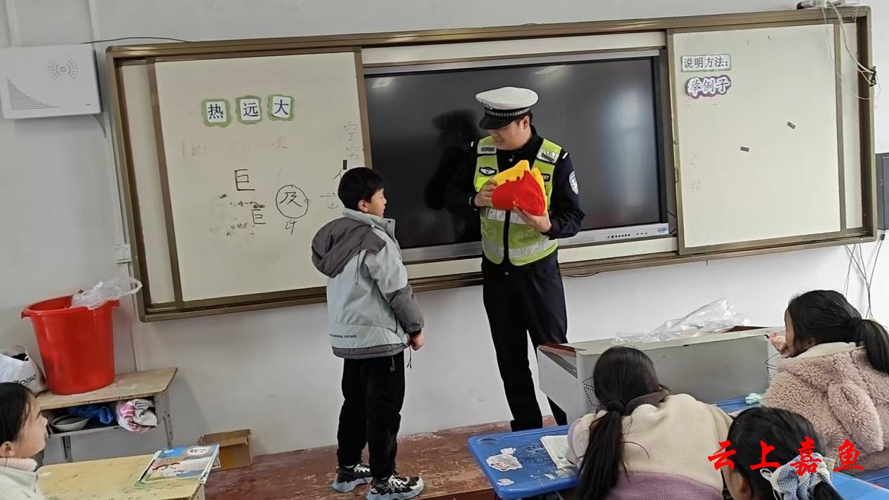 云上嘉鱼报道(通讯员丁梦婷)近日,嘉鱼县公安局交通管理大队民警走进潘家湾小学,开展以“知危险、会避险”为核心的交通安全专题宣传教育活动,用贴心宣讲为孩子们送上实用的安全“护身符”。