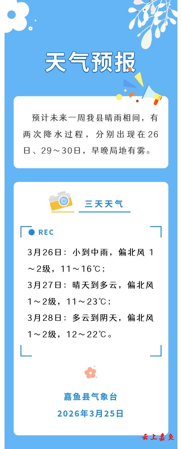 2026年3月25日嘉鱼天气预报