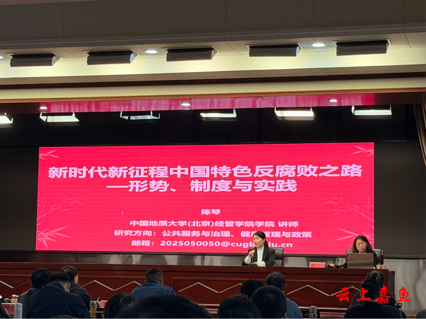 云上嘉鱼报道(通讯员吕佳鸿)4月2日,县委党校邀请中国地质大学(北京)经管学院陈琴讲师作题为《新时代新征程中国特色反腐败之路——形势、制度与实践》的专题讲座。