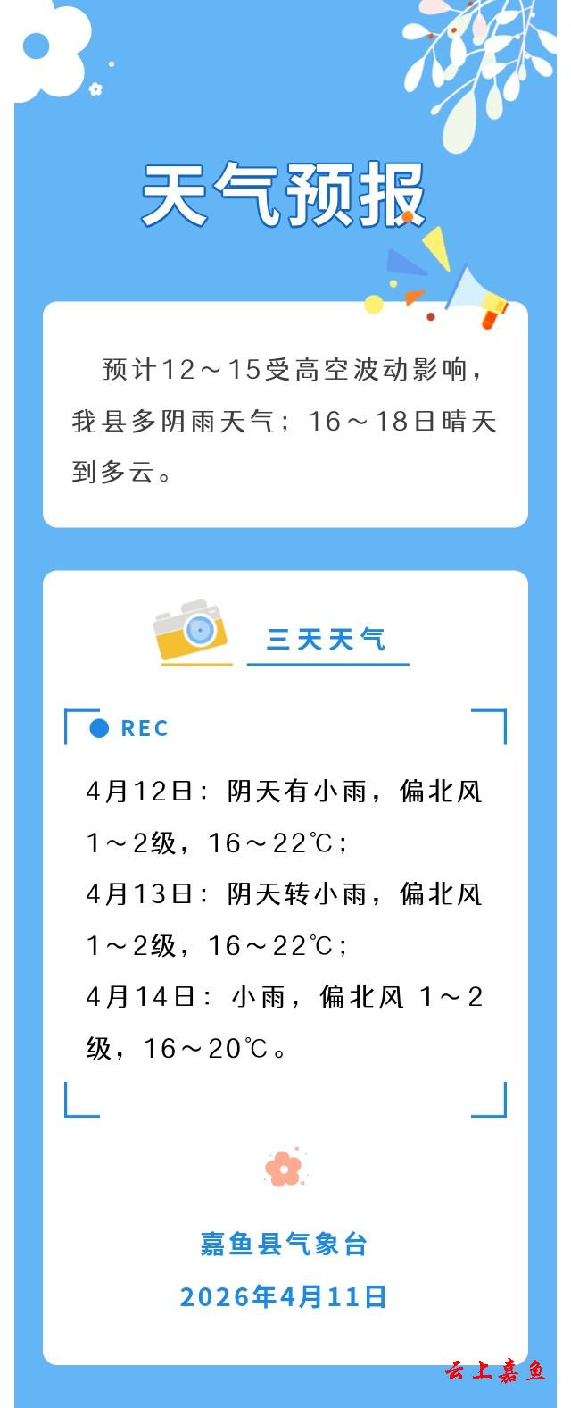 2026年4月11日嘉鱼天气预报
