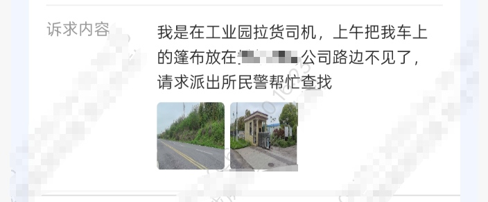 4月10日11时许,嘉鱼县公安局潘家湾派出所接到河南籍货车司机魏先生报警,称其当日驾车前往畈湖工业园拉货时,将价值约三千元的三卷篷布放置于厂区外大路旁,待装货完毕返回后发现篷布丢失,多方寻找无果。