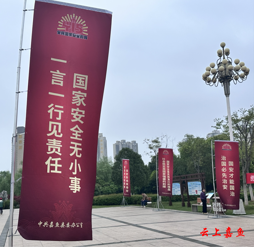 云上嘉鱼报道(全媒体记者祁声坤)“居安思危筑牢人民防线,坚定不移捍卫国家主权”“守国就是守家,国安才能家安”“国家安全无小事,一言一行见责任”……4月15日下午,嘉鱼县二乔公园广场上人头攒动,一条条醒目的标语横幅迎风展开,来自全县各相关部门、金融机构、学校以及周边社区的500余名干部职工、师生及群众代表等齐聚一堂,共同参与这场别开生面的国家安全教育活动。
