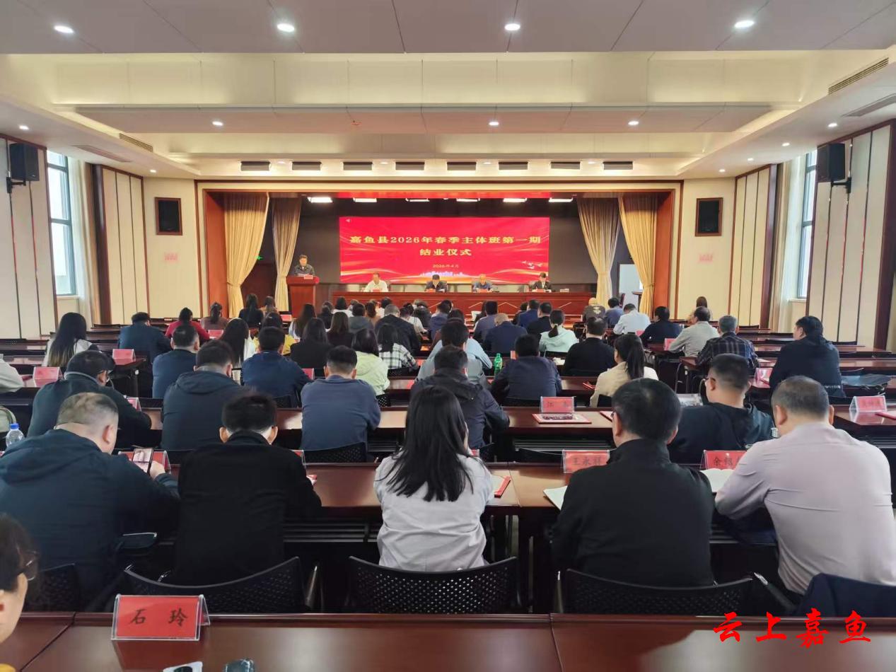 云上嘉鱼报道(全媒体记者郭辉 通讯员程漫竹)4月20日,为期一个月的嘉鱼县2026年春季主体班第一期结业。来自全县各镇、各部门的80余名学员完成所有课程,顺利结业。