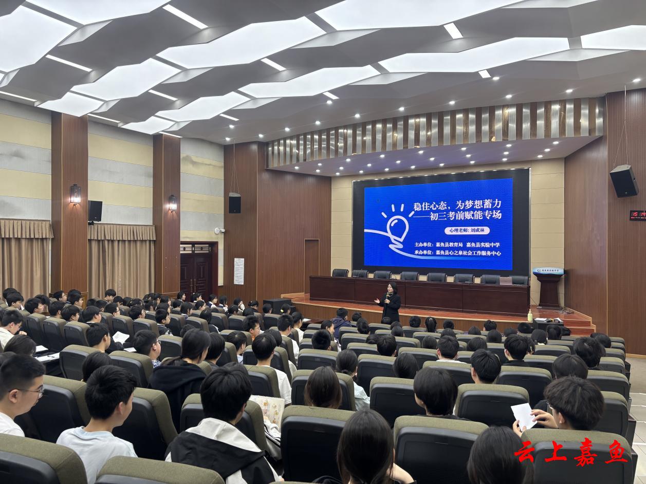 云上嘉鱼报道(全媒体记者夏洋 通讯员孙雅娴)为切实缓解初三学生备考焦虑情绪,助力学子以积极健康的心态迎战中考,4月20日,由嘉鱼县教育局、嘉鱼县实验中学主办,嘉鱼县心之泉社会工作服务中心、嘉鱼县家庭教育研究会联合承办的初三考前减压赋能心理团辅活动,100多名初三学生共同参与,在沉浸式体验中释放压力、调适心态、积蓄力量。