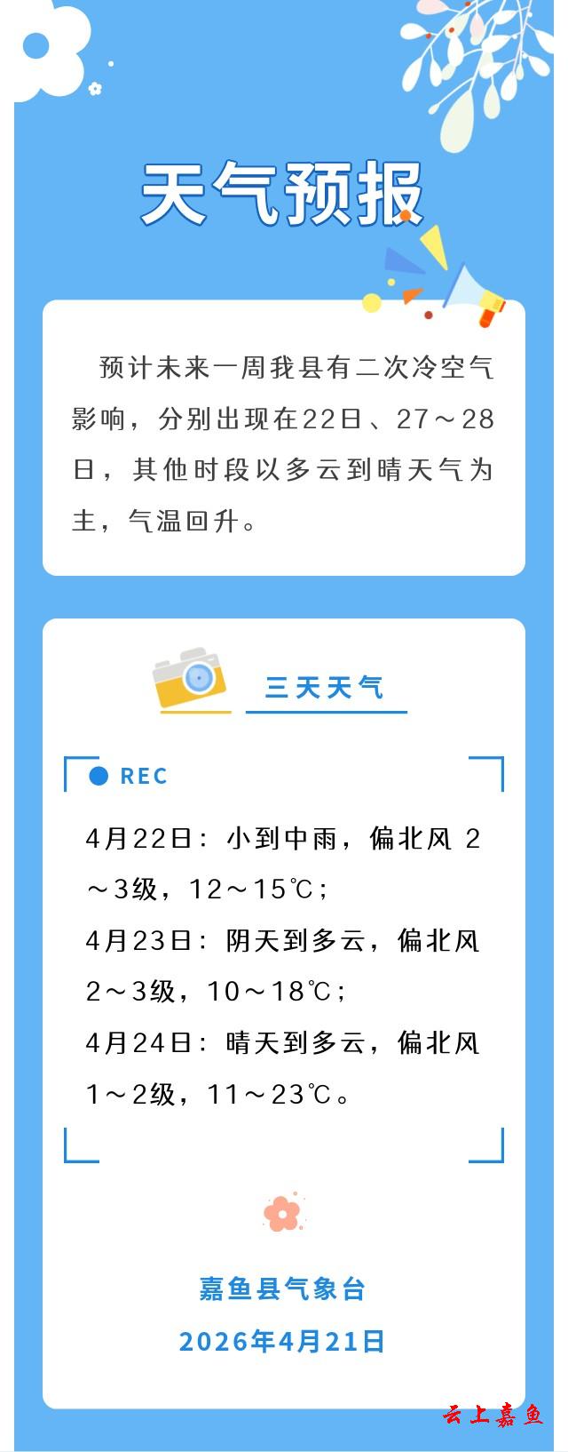2026年4月21日嘉鱼天气预报