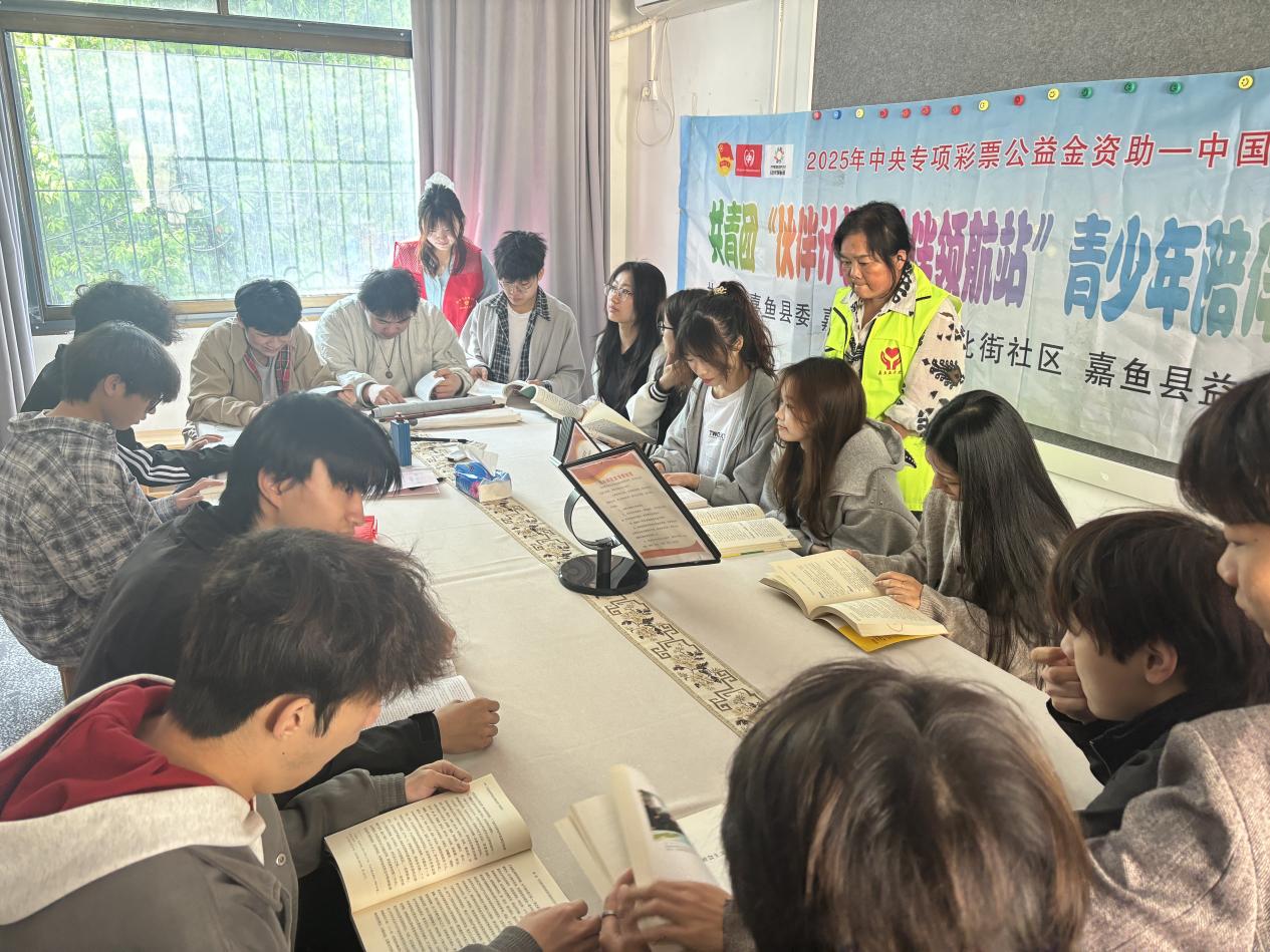 云上嘉鱼报道(全媒体记者祁声坤 通讯员韩佳峻)4月24日,鱼岳镇北街社区团总支、北街社区新时代文明实践站联合武昌首义学院嘉鱼教学改革基地风禾毅行实践队开展“书香北街 阅读同行”主题活动,以书为媒,共赴书香之约,延续读书日的文化热度。