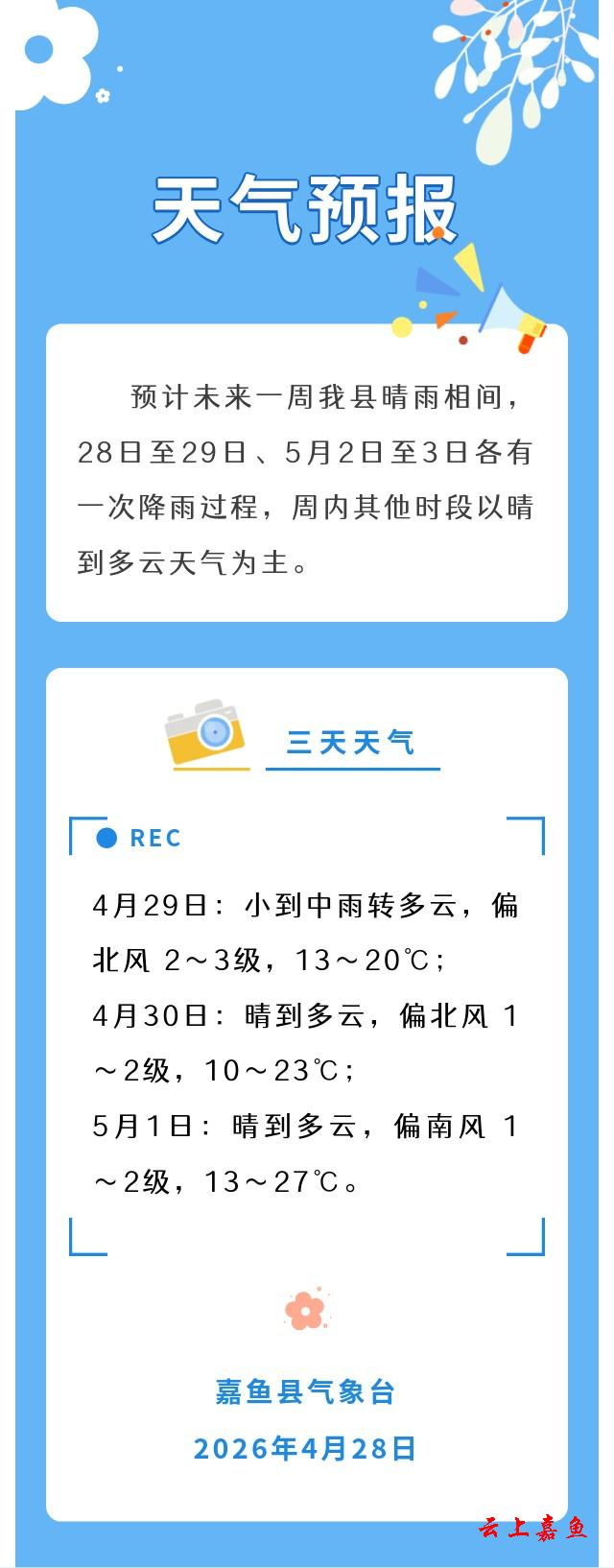 2026年4月28日嘉鱼天气预报