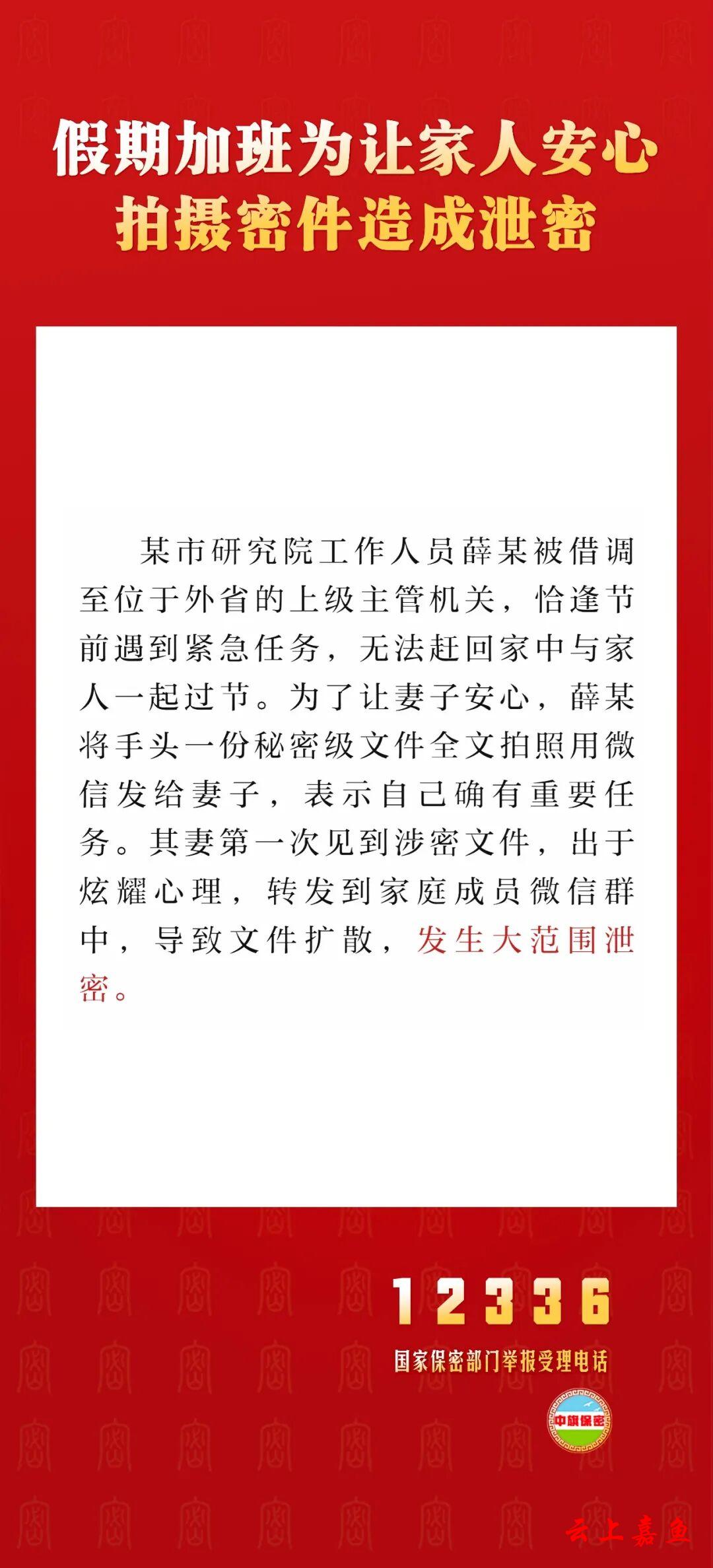 假期泄密案例 — 假期加班为让家人安心,拍摄涉密文件造成泄密
