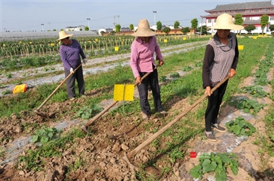 在潘湾镇四邑村五组,一张张高效黄色粘虫板与绿色蔬菜基地形成鲜明对比。在此锄草的农户说,这种传统种植方式,不喷施农药,使用粘虫板减少害虫密度,避免害虫的抗药性,让蔬菜口感具有本色的鲜美。