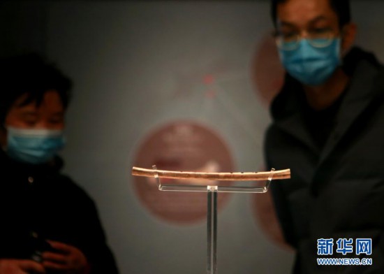 “大家看,这是一支8000多年前的笛子,由鹤骨制成。它特有的音色和音阶,唤醒了来自远古的音乐记忆。请您欣赏一段我们用仿制的骨笛吹奏的旋律。”在“国宝特展”展厅,观众细细端详展柜中的骨笛,侧耳聆听悠远的笛音。