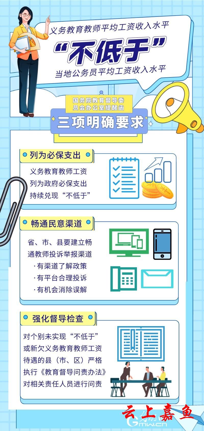 近日,国务院教育督导委员会办公室向各省(市、区)发出提醒函,要求各地切实抓好义务教育教师平均工资收入水平不低于当地公务员平均工资收入水平落实工作,在发放2021年年终奖励性补贴及安排2022年度财政预算时,确保“不低于”政策持续落实落地。2022年,国务院教育督导委员会办公室将继续密切关注各地义务教育教师工资收入“不低于”落实情况,并对落实不到位的地方实行挂牌督导。 来源:光明网