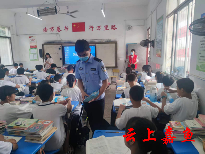 云上嘉鱼报道(通讯员李姝玉、杜开胜)6月6日,陆溪镇新时代文明实践所会同镇派出所、镇司法所,在镇中心小学开展以“关爱儿童,反对拐卖”为主题的反拐宣传活动。