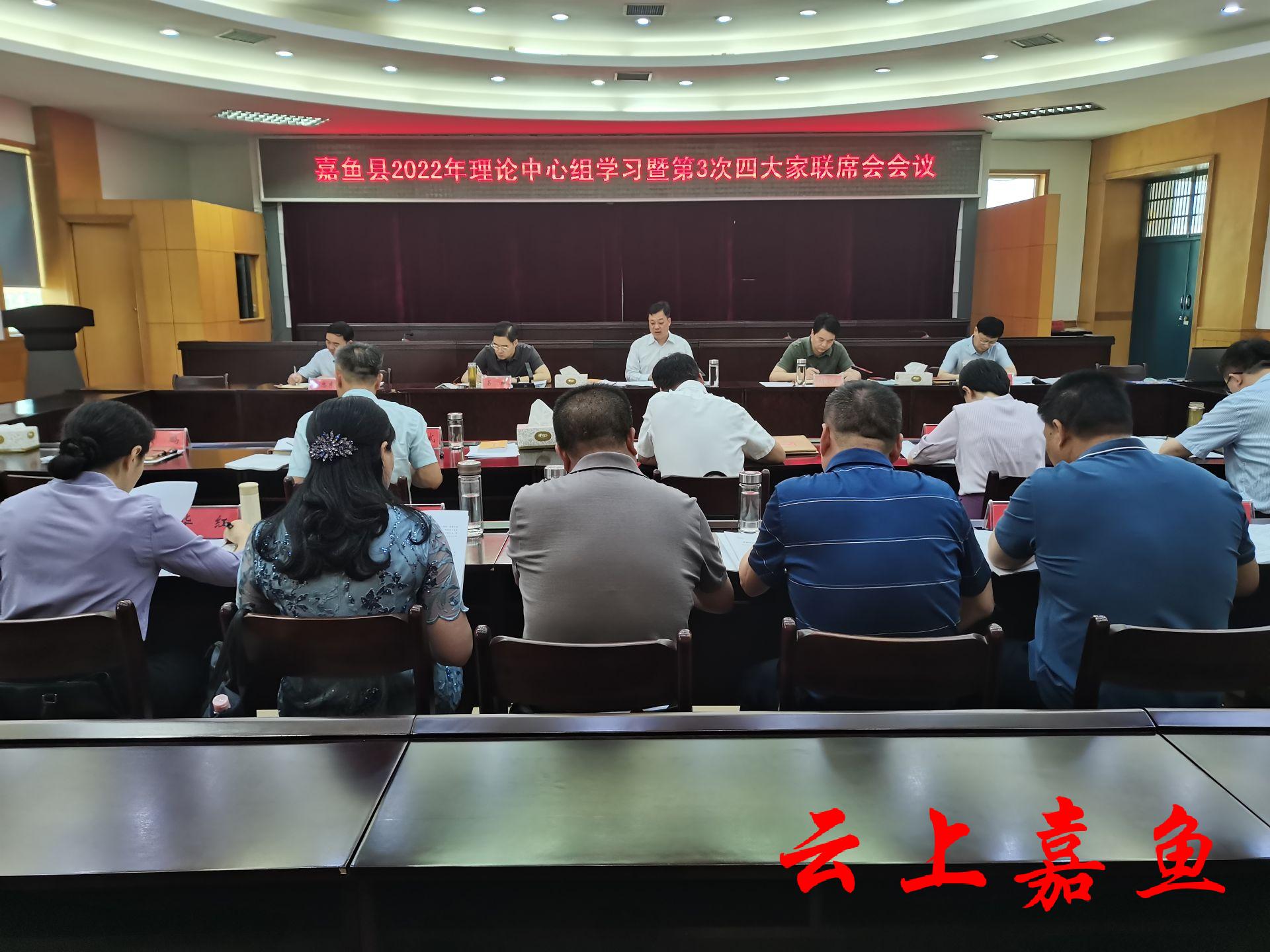 云上嘉鱼报道(全媒体记者邓丹)6月14日,嘉鱼县2022年理论中心组学习暨第3次四大家联席会召开,县委书记王永主持会议并讲话。县领导胡金云、易靖、李德炳、余忠东、聂明新、章斌、王卿、黄鹏、范威、廖旦、王玉坤等参加会议。