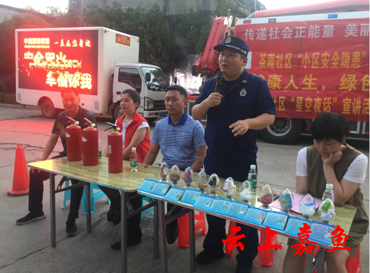 云上嘉鱼报道(全媒体记者胡知微)6月15日,由团县委主办、鱼岳镇茶庵社区承办的“星空夜话”暨“防范小区安全隐患”专题讲座在小湖雅苑进行。