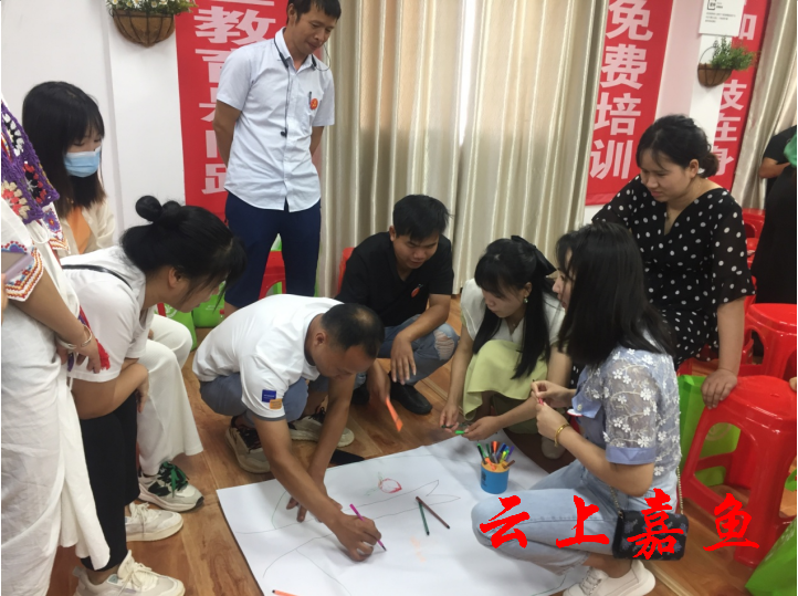 在绘画创作环节,各组志愿者纷纷拿出彩笔,充分发挥自己的想象进行创作,带着志愿者签名的“我爱你中国”、“最美簰洲湾”、“盛夏的果实”、“爱心”等作品跃然纸上。游戏比拼环节,各小组分别派出自己的精锐参加“比划猜词语”游戏,现场气氛活跃。