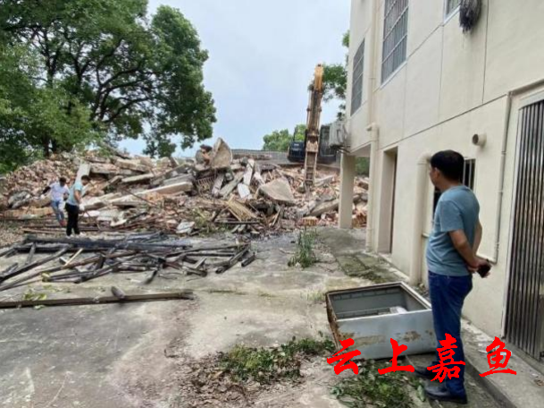 云上嘉鱼报道(全媒体见习记者刘志鹏 通讯员张诗俊)6月23日,一台破拆机在工作人员的指引下开进了嘉鱼法院高铁法庭,开始对位于法庭左后方的二层旧办公楼进行拆除。当天上午11时10分,被鉴定为D级危房的高铁法庭二层旧办公楼完成拆除,整个拆除过程平稳有序,进展顺利。