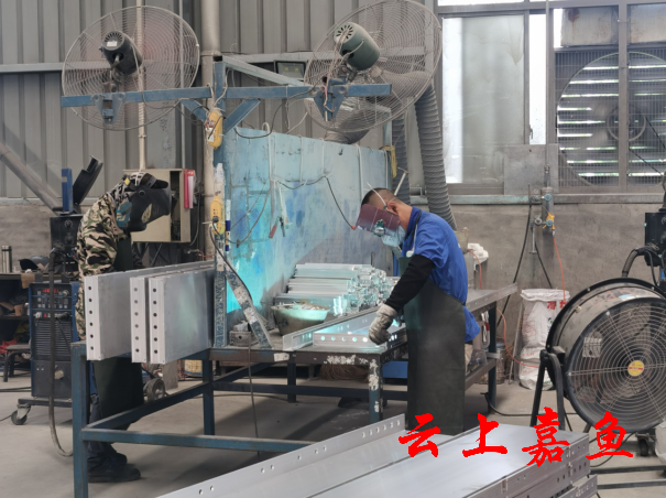 云上嘉鱼报道(全媒体记者汪妍)近日,在湖北元拓铝合金模架制造有限公司厂房,机器轰鸣声不绝于耳。在原材料生产车间,工人们正在对原材料切割焊接,或用压力机给模板整形,现场一派繁忙有序的景象。