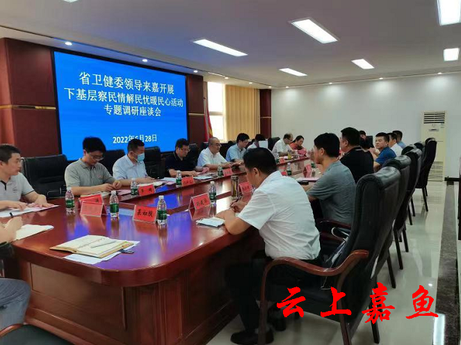 云上嘉鱼报道(全媒体记者邓丹)6月27日-28日,“人民英雄”国家荣誉称号获得者、全国道德模范、省卫健委党组成员、副主任、公共卫生总师张定宇一行来我县开展“一下三民”活动并召开座谈会。市卫健委党组书记、主任许关欣,县委副书记、县长胡金云,县委常委、宣传部部长廖旦,副县长华红参加活动。