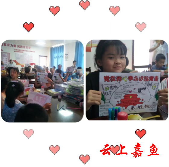 在“绘个简报献给党”环节,孩子们用心用情把自己对党的热爱融入到简报之中,表达了从小学党史、永远跟党走的信心与决心。伴随着歌曲《没有共产党就没有新中国》、《中国少年先锋队队歌》激昂的唱响,孩子们爱党爱国的意识也在旋律中丰满起来。