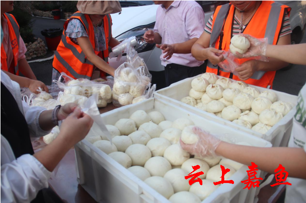 “这么热的天,一定要注意防暑,起这么早工作,辛苦你们了!来,包子馒头,再吃点西瓜,要多多注意身体!”志愿者们在送上慰问品时也不忘送上暖心叮嘱。
