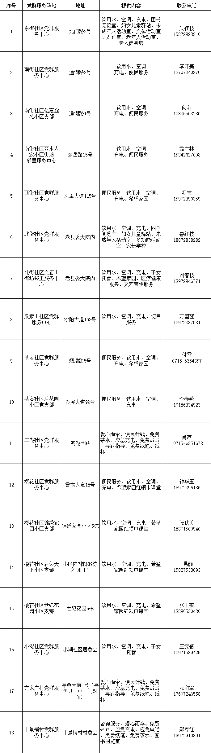 高温暑热,嘉鱼县城区18个红色驿站服务阵地免费对快递员、外卖送餐员、网约车司机等新业态和新就业群体开放,红色驿站提供休息纳凉、歇脚充电、子女托管等服务,切实增强新业态和新就业群体的获得感、幸福感、归属感。 嘉鱼县红色驿站服务点 同时,我们号召各位快递员、外卖送餐员在做好本职工作的同时,积极参与城市基层治理志愿服务活动、全国文明城市创建活动,为共同缔造美好环境和幸福生活作出更大贡献。 来源:嘉鱼县委组织部