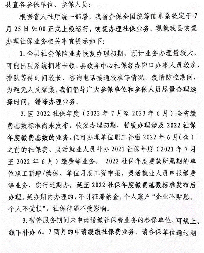 关于我县恢复办理社会社保业务的温馨提示