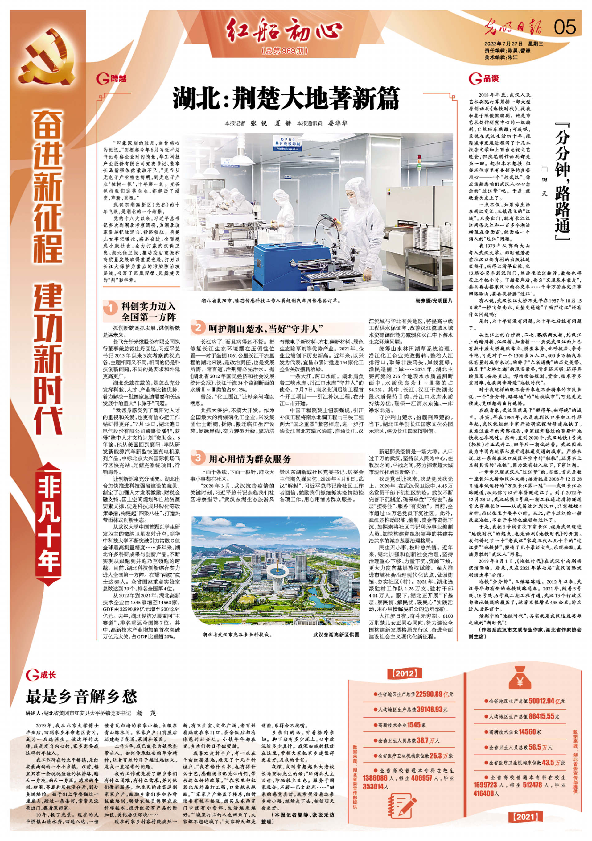 今天(7月27日),《光明日报》发布《湖北:荆楚大地著新篇》文章,聚焦湖北“非凡十年”。