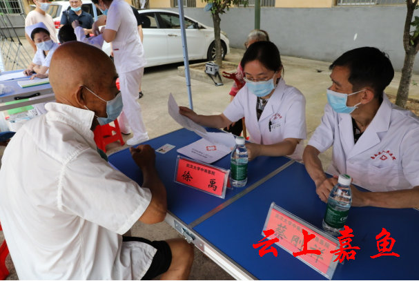 一大早,武大中南医院嘉鱼医院、簰洲湾镇卫生院的医务志愿者们就来到了该镇金家洲村,针对不同的人群进行健康评估,开展健康宣教,为他们科普合理膳食,适度运动及常见病预防与护理相关知识。