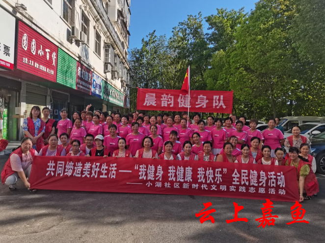 活动邀请小湖社区新时代文明实践站晨韵健身队志愿者们来到小湖社区广场进行健身娱乐活动。在美妙悦耳的音乐旋律中,队员们专心起舞,把细腻的激情注入舞姿中,并以美丽的舞姿展示自己的身手,塑造出各类美的姿态、美的造型,达到体育与艺术、健与美结合的意境。