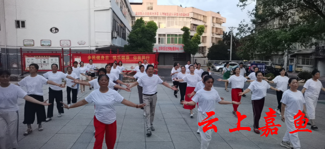 云上嘉鱼报道(通讯员王田)8月8日是我国第14个“全民健身日”。为丰富社区居民的文化娱乐生活,推进基层文艺队伍建设,营造和谐友爱的温馨社区氛围,当天,北街社区新时代文明实践站组织辖区居民、社区志愿者40多人开展了“我运动 我健康 我快乐”全民广场舞健身活动。