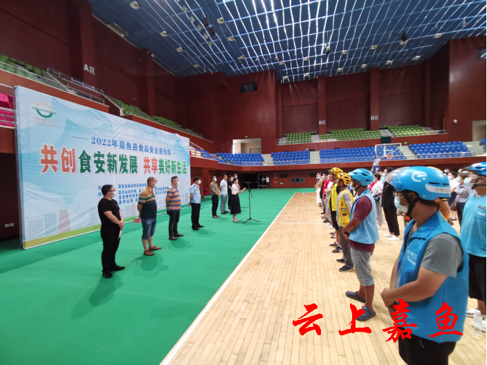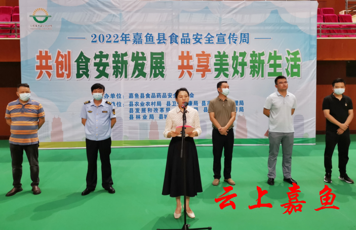 云上嘉鱼报道(全媒体记者卢建 通讯员皮灿)8月11日,我县举行以“共创食安新发展、共享美好新生活”为主题的2022年食品安全宣传周集中宣传活动,副县长华红出席活动并讲话。县纪委监委、县创建办、县人大代表、县政协委员、县食安委相关成员单位分管负责人,超市、外卖平台、外卖骑手、网络配餐商户代表、新闻媒体和社会各界群众代表参加活动。