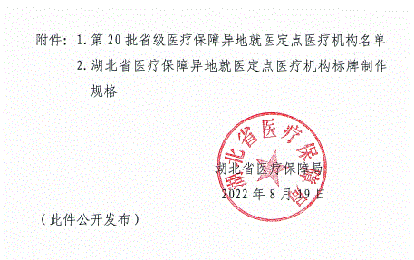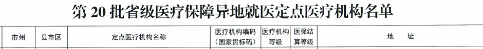 省医疗保障局关于确定第20批省级医疗保障异地就医定点医疗机构的通知