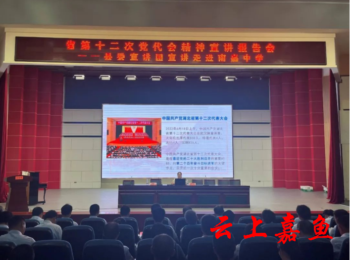 云上嘉鱼报道(全媒体记者耿海军)9月13日,省第十二次党代会精神宣讲报告会走进南嘉中学,学校班子成员及全体党员、预备党员、入党积极分子参加学习。