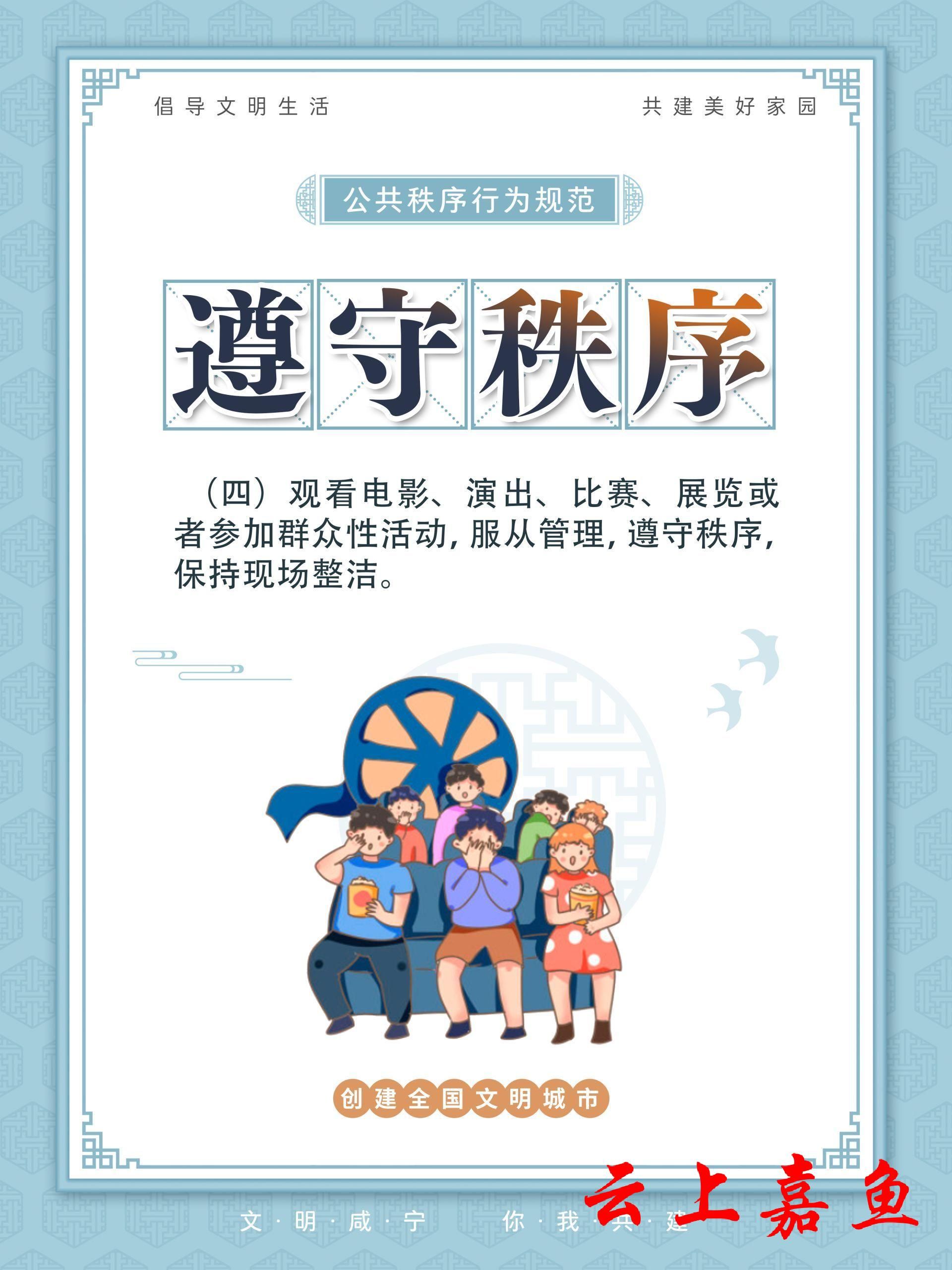 《咸宁市文明行为促进条例》(以下简称条例)于2021年12月21日经市人大常委会会议表决通过,2022年3月31日经省人大常委会会议批准,4月26日公布,10月1日起施行。为推进条例的宣传贯彻实施,云上咸宁就条例内容进行分篇解读,今天(9月15日)推出《咸宁市文明行为促进条例之公共秩序行为规范篇 》。 (九)其他公共秩序行为规范。(杨紫妮 余梦婷) 来源:云上咸宁
