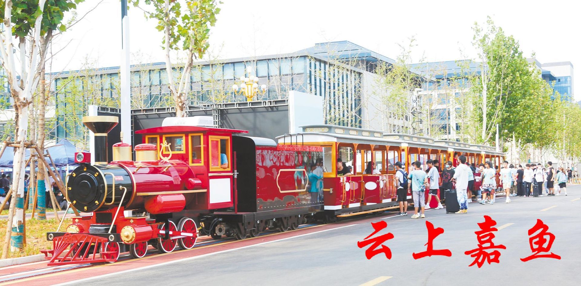武汉东湖学院南校区开行小火车迎接新生。 (武汉东湖学院 供图)