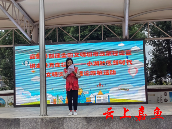 宣传活动中,志愿者给同学们详细讲解了《嘉鱼县创建全国文明城市倡议书》《咸宁市文明条例》等全国文明城市创建相关知识,教育孩子们争做“文明小使者”。
