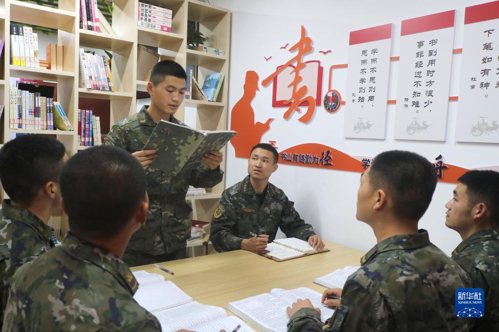 中共中央总书记、国家主席、中央军委主席习近平24日下午出席军队领导干部会议时发表的重要讲话,在解放军和武警部队引起强烈反响。这是南部战区陆军第74集团军某合成旅“大渡河连”组织官兵认真学习习主席重要讲话(10月25日摄)。新华社发(薛健 摄)