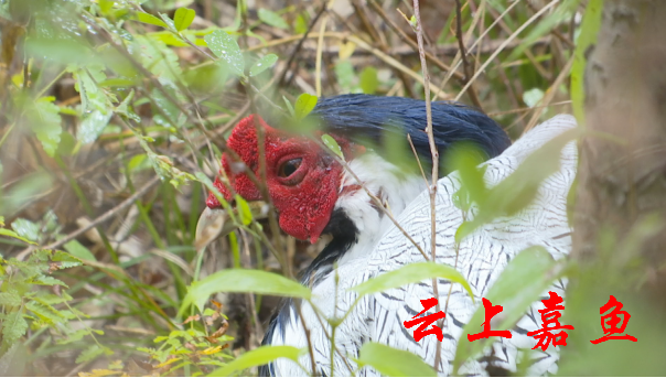 白鹇,又名白雉。分为雄鸟和雌鸟,雄鸟羽冠明显,蓝黑色,脸和两颊部分赤红色,上体与两翼白色,尾羽长,下身蓝黑色,脚红色。白鹇习惯栖息在海拔2000米以下的树林、竹林等处,常呈小群活动,以植物芽、果实及种子为主食,是国家二级保护动物。白鹇体态优雅,外型华丽,机敏灵活,被称作“林中仙子”。